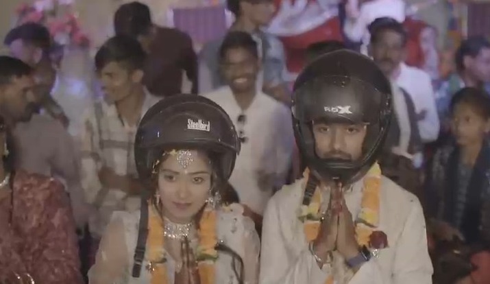 राजनांदगांव जिले के डोंगरगढ़ तहसील क्षेत्र अंतर्गत आने वाले ग्राम जारवाही निवासी ग्राम पंचायत भानपुरी में पदस्थ पंचायत सचिव बीरेन्द्र साहू की सगाई करियाटोला निवासी ज्योति साहू के साथ संपन्न हुई। इस दौरान युवक और युवती ने एक दूसरे को सगाई की अंगूठी के साथ ही हेलमेट पहनाकर सगाई की रश्म पूरी की। वहीं उपस्थित लोगों से बाइक चलाते समय हेलमेट पहनने की अपील की। बीरेन्द्र साहू साहू ने बताया कि उनके पिता का निधन सड़क हादसे में सिर पर चोट लगने की वजह से हुई थी। जब यह हादसा हुआ था तब उसके पिता हेलमेट नहीं पहने थे। इसके बाद से उनका पूरा परिवार हेलमेट के प्रति लोगों को जागरूक करता आ रहा है।
