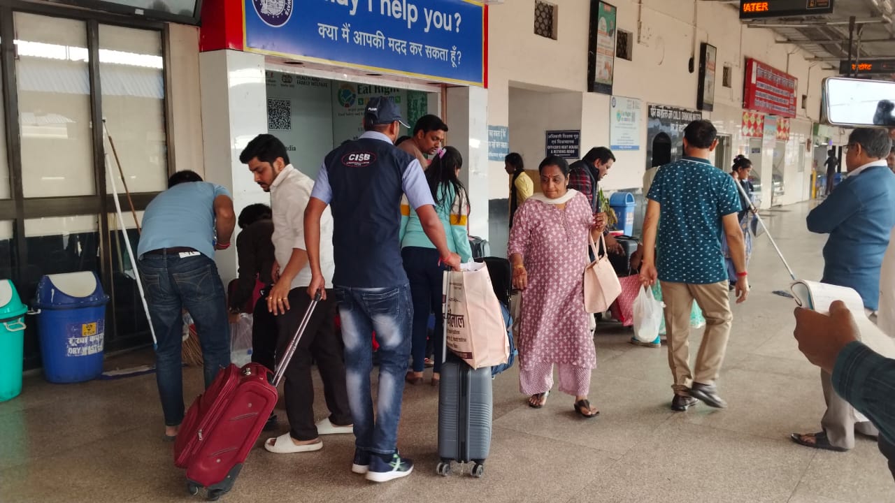 वरिष्ठ मंडल वाणिज्य प्रबंधक श्री अवधेश कुमार त्रिवेदी ने यात्रियों रायपुर स्टेशन का दौरा किया यात्रियों की सुविधा के लिए बने हेल्प बूथ, यात्रियों को दी जा रही सुविधाओं का जायजा लिया यात्रियों से बात की यात्रियों ने रेलवे द्वारा की जा रही मदद पर संतुष्टि का भाव प्रदर्शित किया।