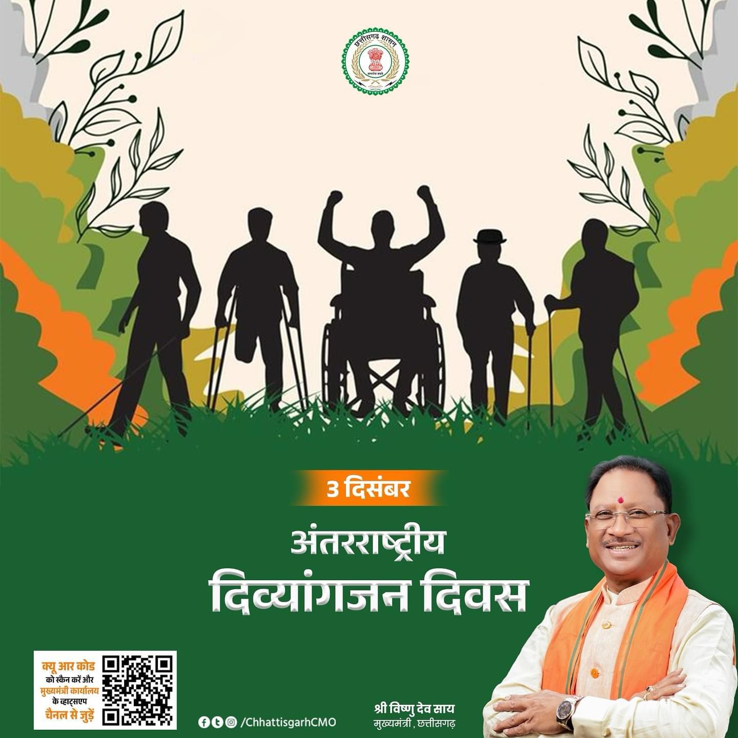 अंतर्राष्ट्रीय दिव्यांगजन दिवस पर मुख्यमंत्री विष्णुदेव साय ने दिव्यांगजनों की विशिष्ट क्षमता का उल्लेख करते हुए उन्हें शुभकामनाएँ दी। उन्होंने कहा “राज्य सरकार दिव्यांगजनों के सर्वांगीण विकास और स्वावलंबन के लिए प्रतिबद्ध है और इस दिशा में विभिन्न योजनाओं पर कार्य किया जा रहा है।
