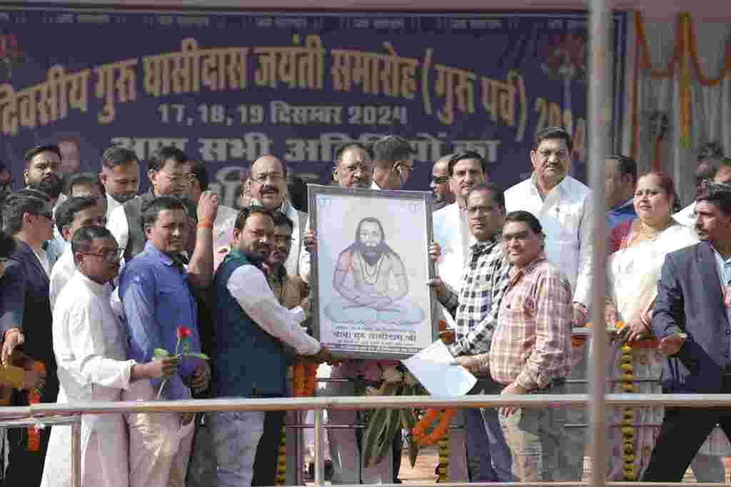 रायपुर। सतनाम पंथ के प्रवर्तक एवं महान संत गुरू घासीदास जी की जंयती के अवसर पर छत्तीसगढ़ विधान सभा परिसर स्थित सेन्ट्रल हॉल में प्रतिष्ठापित उनके तैल चित्र पर बुधवार को विधान सभा सचिव दिनेश शर्मा ने पुष्पांजलि अर्पित कर उन्हें श्रद्धा सुमन अर्पित किये। इस अवसर पर विधान सभा सचिवालय के वरिष्ठ अधिकारियों ने भी सतनाम पंथ के प्रवर्तक गुरू घासीदास को उनकी जयंती पर पुष्पांजलि अर्पित कर उन्हें स्मरण किया।