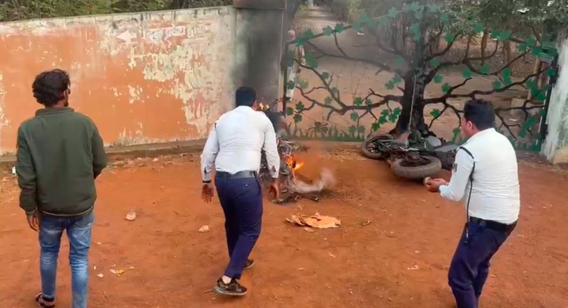 🔸 आम नागरिक के सुचना पर तत्काल पहुंच कर अन्य बाईक को जलने से बचाने हटाया गया ।