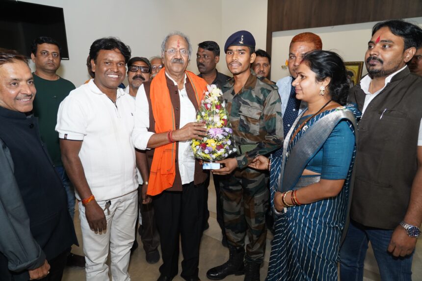 रायपुर :- राजधानी रायपुर निवासी और भारतीय सेना के गौरवशाली अग्निवीर हितेश साहू ने आज सांसद बृजमोहन अग्रवाल से सौजन्य मुलाकात की।हितेश साहू , अपनी ट्रेनिंग पूरी कर चुके है, और बीकानेर, राजस्थान में पहली पोस्टिंग मिली है, जहां रवाना होने से पहले उन्होंने सांसद बृजमोहन से मुलाकात कर अपनी सेवाओं और अनुभवों के बारे में जानकारी साझा की और देश की सेवा में अपना योगदान देने के प्रति प्रतिबद्धता व्यक्त की।