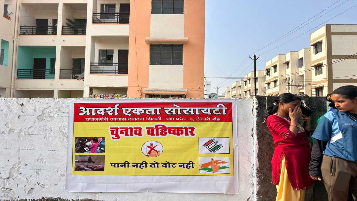 रायपुर। राजधानी में सरकार द्वारा बनाए गए पीएम आवास के निवासियों ने आज निकाय चुनाव से पहले चुनाव का बहिष्कार कर दिया। दरअसल, दलदल सिवनी स्थित पीएम आवास कॉलोनी में रहने वाले लोगों ने लंबे समय से पानी और अन्य समस्याओं को जनप्रतिनिधियों द्वारा अनदेखा किए जाने पर चुनाव का बहिष्कार कर दिया। असुविधाओं के अंबार से परेशान लोगों ने कॉलोनी के बाहर चुनाव बहिष्कार का बैनर लगाकर प्रदर्शन किया।