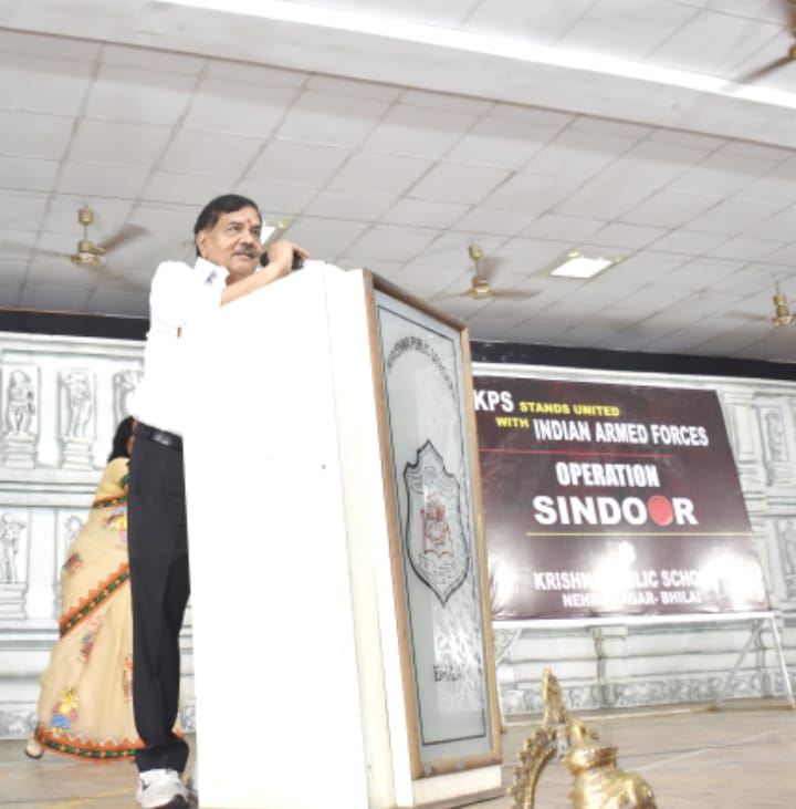 कृष्णा पब्लिक स्कूल, नेहरू नगर, भिलाई में दिनांक 9 मई 2025 को भारतीय सेना के ऑपरेशन सिंदूर की समर्थन करने तथा उनकी सफलता की कामना हेतु संस्था के वाइस चेयरमेन श्री आनंद कुमार त्रिपाठी व समस्त के. पी. एस. परिवार एकजुट हुआ। आज सभी के हृदय में यही भाव हिलोरे ले रहा था “चलो एक बार फिर से, हम देश के लिए जियें।” आज समय है हर भारतीय को सेना के मनोबल बढ़ाने हेतु दृढ़ संकल्पित होने का। राष्ट्र की अखंडता व स्वतंत्रता के लिए भारतीय सेना ने हमेशा से अपनी वीरता, शौर्य, साहस, पराक्रम का कौशल दिखाते हुए विश्व को अचंभित कर दिया। आज भारत की सेना के साहस के आगे सम्पूर्ण विश्व नतमस्तक हैं। जब-जब भारत पर कोई आँख उठी तब-तब भारतीयता और भारत के जांबाज सैनिक उन आँखों को न केवल फोड़े है बल्कि दुनिया को संदेश भी दिए कि हम छेड़ते नहीं है छेड़ने वालों को छोड़ते भी नही है। आज आवश्यकता है हर भारतीय नागरिक एकता, अखंडता और संप्रभुता की रक्षा करते हुए राष्ट्र के इस विषम परिस्थिति में सेना के लिए संपूर्ण सहयोगी बनें।