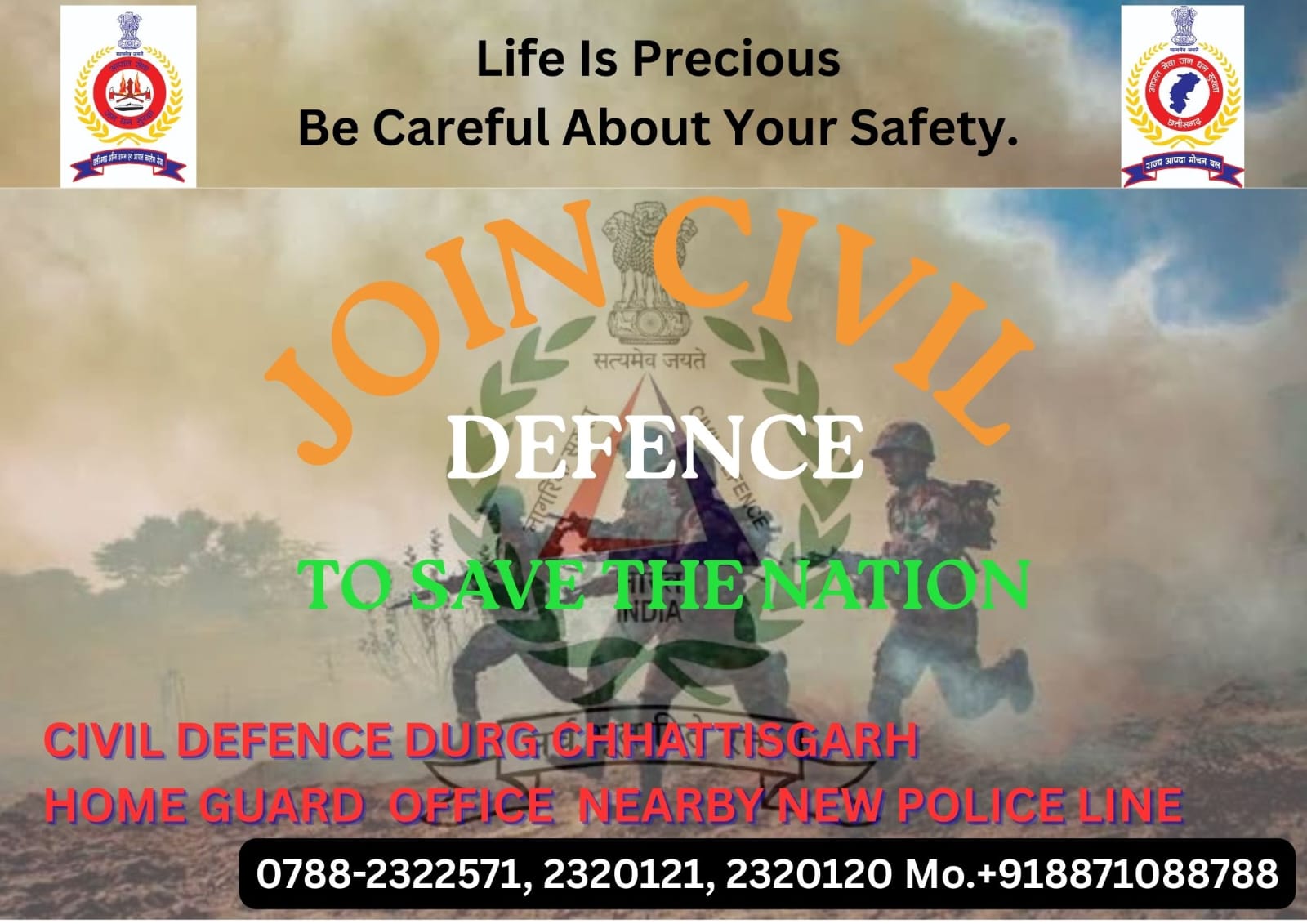 तो समय न गवाये, खुद को सिविल डिफेंस ऑफिस में नामांकित करायें एवं अपनी सुविधा अनुसार प्रशिक्षण पाकर राष्ट्र सेवा में सहभागी बने।