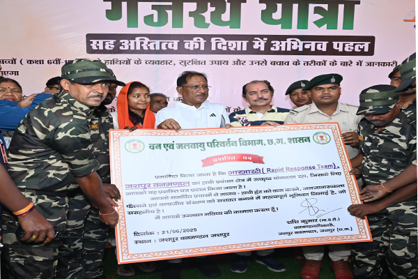 रायपुर 21 जून 2025/अंतरराष्ट्रीय योग दिवस के अवसर पर मुख्यमंत्री श्री विष्णु देव साय ने आज जशपुर के रणजीता स्टेडियम परिसर में आयोजित कार्यक्रम में ‘गजरथ यात्रा’ को हरी झंडी दिखाकर शुभारंभ किया। यह अभिनव पहल छत्तीसगढ़ में मानव-हाथी द्वंद को कम करने और वन्यजीव संरक्षण के लिए जनजागरूकता फैलाने के उद्देश्य से शुरू की गई है। इस यात्रा के माध्यम से स्कूलों, ग्राम पंचायतों और हाट-बाजारों में पहुंचकर हाथियों के व्यवहार, सुरक्षा उपायों और सह-अस्तित्व के संदेश को जन-जन तक पहुंचाया जाएगा।