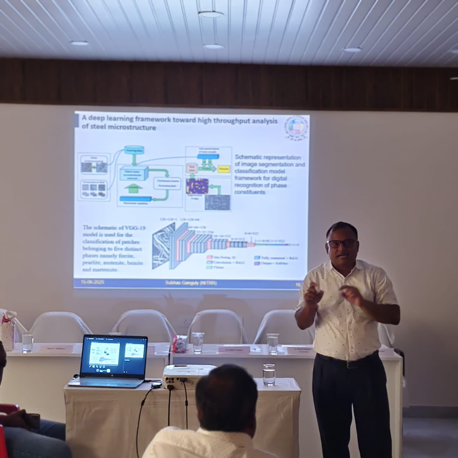 विशिष्ट अतिथि डा सुभाष गांगुली , विभागाध्यक्ष एवं सह प्राध्यापक, धातुकर्म एवं सामग्री इंजीनियरिंग, एन आई टी रायपुर ने अपना प्रस्तुतीकरण “स्टील माइक्रो स्ट्रक्चर” विषय पर दिया | उन्होंने बताया कि प्रत्येक सामग्री का एक माइक्रो स्ट्रक्चर होता है जो कि उसके प्रसंस्करण की प्रक्रिया से मिलता है और वही उसके गुणों को नियंत्रित करता है | डा सुभाष गांगुली ने बताया कि स्टील माइक्रो स्ट्रक्चर के परिशोधन द्वारा सभी उत्पादों की लागत किफायती होगी तथा इससे नैसर्गिक संसाधनों की बचत भी होगी और पर्यावरण संरक्षण में भी मदद मिलेगी | उन्होंने कहा कि स्टील माइक्रो स्ट्रक्चर के ज्ञान से लक्षित उत्पाद के घटक तत्वों की जानकारी प्राप्त होगी जो भविष्य के स्टील उत्पादों के निर्माण प्रक्रिया में मदद गार साबित होगा | डा गांगुली ने बताया कि चैट जी पी टी तथा ए आई के उपयोग द्वारा वास्तविक और आभासी प्रक्रिया के अंतर को समझा जा सकता है |