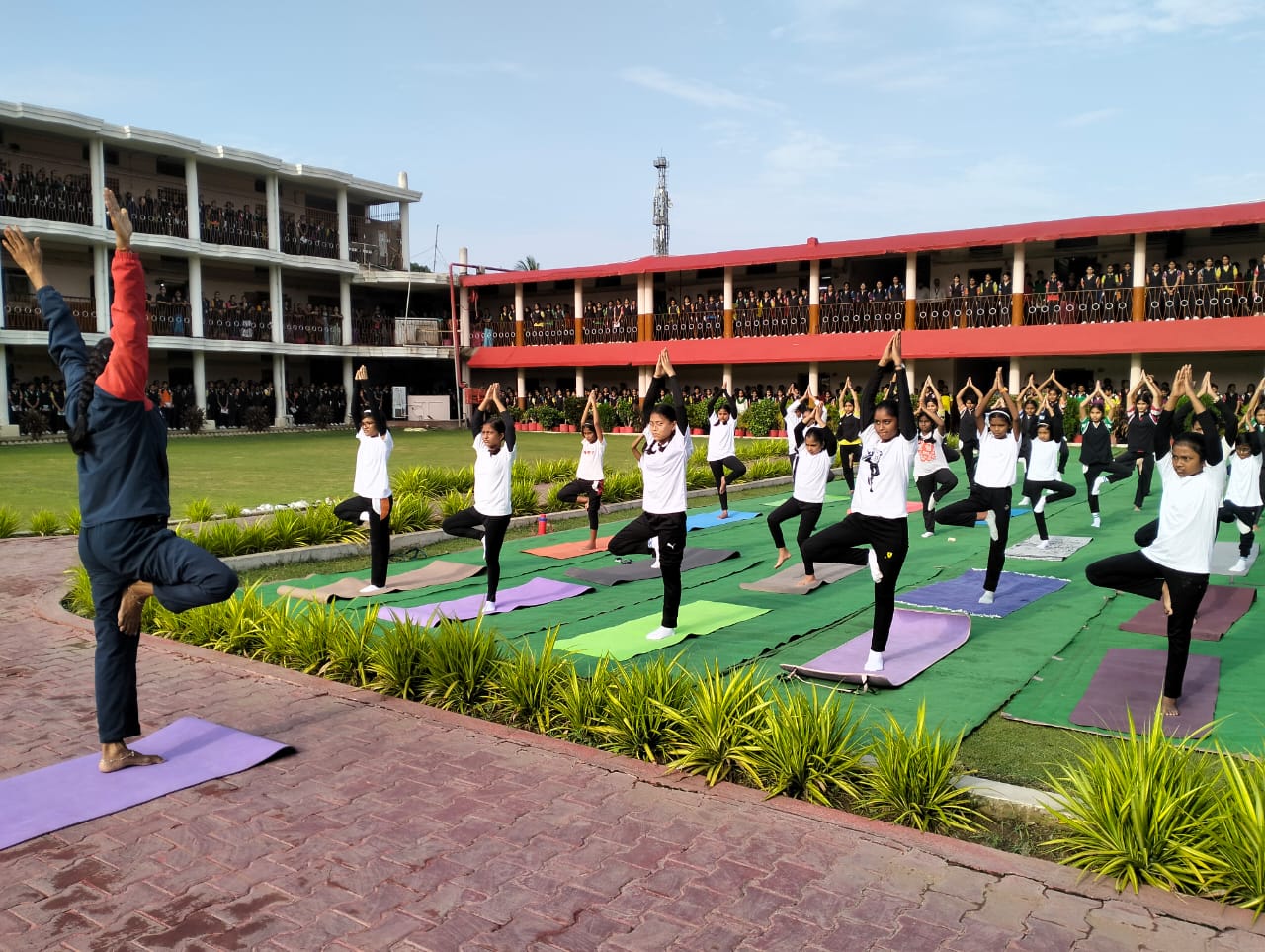 भिलाई : विश्व योग दिवस के उपलक्ष्य पर विभिन्न श्रेणियों में छात्र-छात्राओं ने प्राचार्य श्री टी. ऐंटो जेकब के दिशा-निर्देशों एवं योग शिक्षकों के संकेतों के आधार पर विभिन्न योगासनों को प्रदर्शित किया।