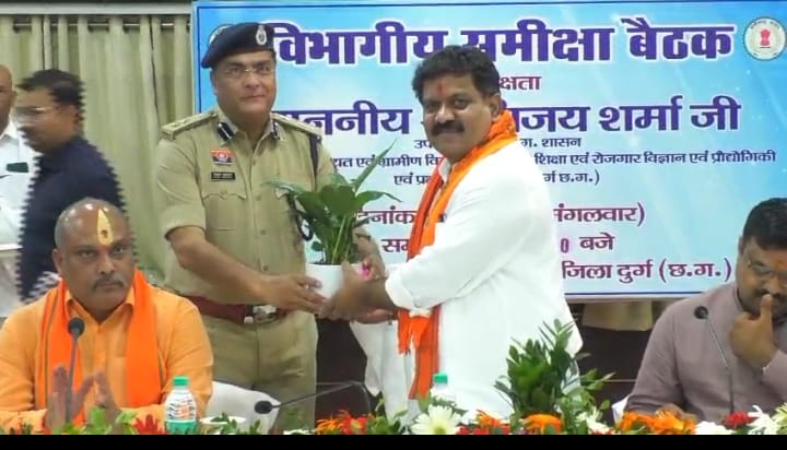 प्रभारी मंत्री एवं प्रदेश के गृहमंत्री विजय शर्मा ने ली विभागीय समीक्षा बैठक उनके साथ उपस्थित थे दुर्ग शहर के विधायक गजेंद्र यादव एवं दुर्ग ग्रामीण के विधायक ललित चंद्राकर