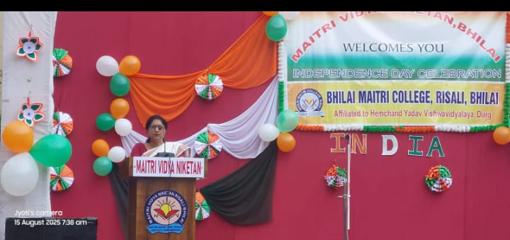 देश की आजादी के 78 साल पूरे हो चुके और उनासींवा स्वतंत्रता दिवस आज मैत्री विद्या निकेतन में पूरे उल्लास सम्मान और नई ऊर्जा के साथ मनाया गया। आज पूरे विश्व में भारत को जो पहचान मिल रही है, उसका गर्व एवं जोश आज के पूरे स्वतंत्रता दिवस समारोह में स्कूल के छात्र-छात्राओं अध्यापकों और शाला परिसर के प्रत्येक व्यक्ति में देखने को मिला। इस अवसर पर संस्था की अध्यक्षा श्रीमती राजम सुधाकरण जी के द्वारा राष्ट्रीय ध्वज फहराया गया। राष्ट्रगान के पश्चात स्कूल के हेड बॉय ऋषभ प्रधान ने राष्ट्र के प्रति अपने कर्तव्यों को निभाने की शपथ दिलाई। स्काउट गाइड के विद्यार्थियों ने शानदार परेड करते हुए तिरंगे को सलामी दी। इस अवसर पर संस्था की प्रबंधक एवं प्राचार्य डॉ. संजीता थंबी ने अपने विचार प्रस्तुत किये। उन्होंने स्वतंत्र भारत के वसुधैव कुटुंबकम की भावना को व्यक्त किया कि किस प्रकार भारत संपूर्ण विश्व को भाईचारे का संदेश देता है। देश की युवा पीढ़ी को आज देश के प्रति कर्तव्य निष्ठ, ईमानदार और जागरूक बनने की जरूरत है उसे संचार माध्यमों के झूठे जाल में न फंसकर देश के विकास और प्रगति पर अपना ध्यान केंद्रित करना चाहिए और विकसित भारत की पहचान एक नए भारत के रूप में बनानी चाहिए ।