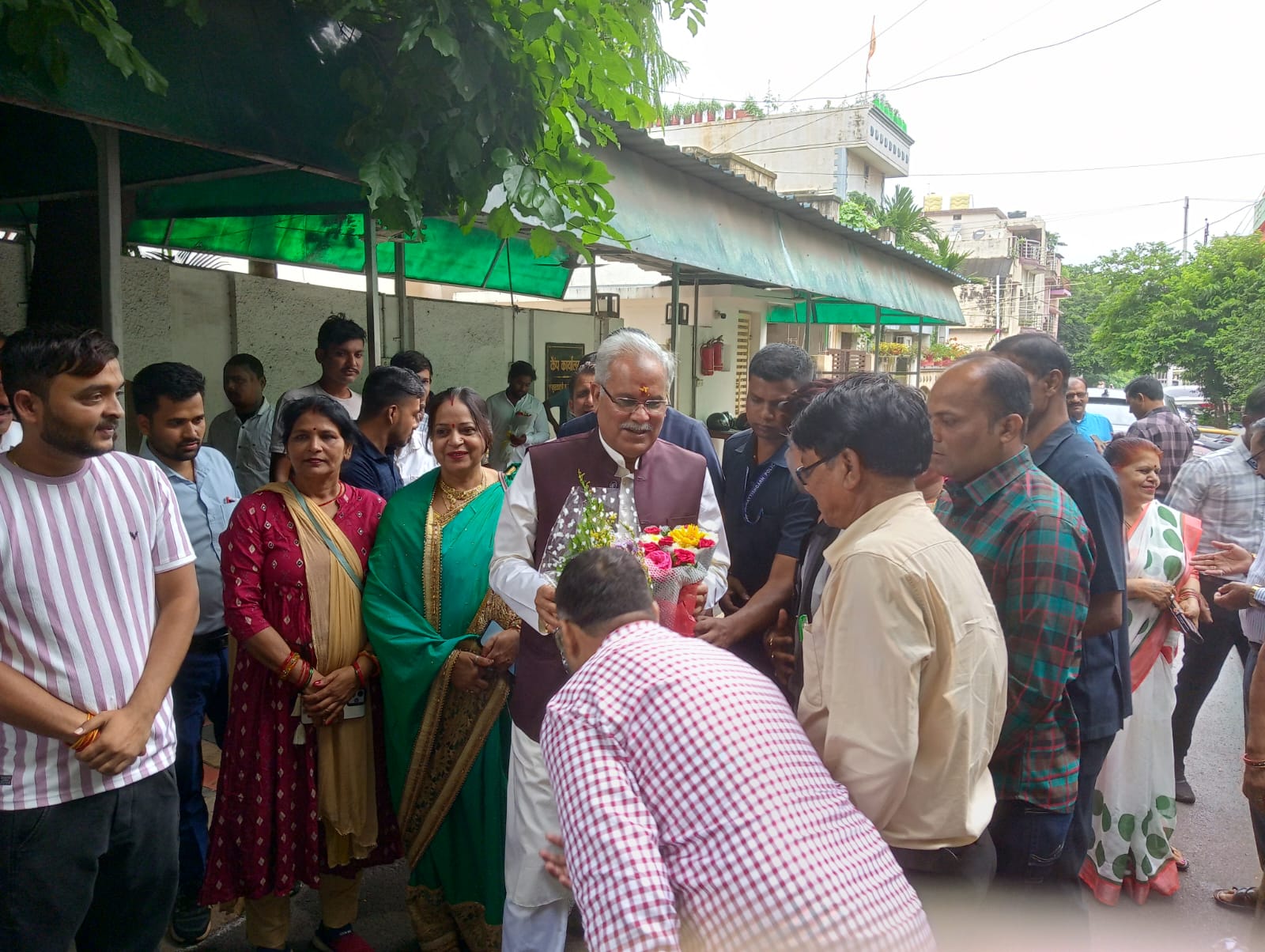 भिलाई 3-प्रदेश के पूर्व मुख्यमंत्री भूपेश बघेल का जन्मदिन के उपलक्ष पर उनके कार्यकर्ता द्वारा प्रदुम नगर निवास पर सुबह से ही कार्यकर्ताओं का हुजुम इकट्ठा था निवास से बाहर आते ही कार्यकर्ता उन्हें गुलदस्ता एवं मानव से बधाई एवं शुभकामना देना प्रारंभ किया यह लगातार सिलसिला चलता रहा इसके बाद वह रायपुर की ओर कुंज करेंगे भारी संख्या उपस्थित थे भिलाई चरोदा नगर निगम के महापौर निर्मल कोसरे, सभापति कृष्ण चंद्राकर, भारी संख्या में पर परिषद उपस्थित थे नगर निगम पूर्व महापौर निता लोधी बधाई देने पदम नगर निवास पहुंचे कांग्रेस कार्यकर्ता सेक्टर 5 के सुमित पवार भी प्रदेश के पूर्व मुख्यमंत्री भूपेश बघेल को गुलदस्ता देकर बधाई एवं शुभकामनाएं दिए इस सिलसिले में चरोदा के विकास चौधरी ने भी गुलदस्ता बैठकर शुभकामनाएं एवं बधाई दी भारी संख्या में कार्यकर्ता उपस्थित होने से भूपेश बघेल जिंदाबाद का नारा चल रहा था और बधाई संदेश भी इसी सिलसिले में कार्यकर्ताओं में उपस्थित थे अमित यादव, चंचल विश्वास, हर्मिक सिंह, उमेश बघेल, जीतू अग्रवाल अग्रवाल (मेडिकल वाले चरोदा) प्रकाश लोहाना (जलाराम स्वीट्स भिलाई 3 वाले) ब्लॉक कांग्रेस कमेटी के भिलाई ३ अध्यक्ष मनोज मढरिया, दुलारी वर्मा वरिष्ठ कांग्रेसी नेत्री एवं पूर्व कुर्मी समाज के राज प्रधान एवं प्रदेश सचिव, मनीष वर्मा पार्षद पदम नगर, और भी कार्यकर्ता उपस्थित थे