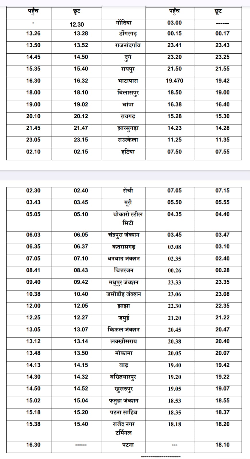 इस गाड़ी की विस्तृत समय-सारणी निम्नानुसार है -👇🏻