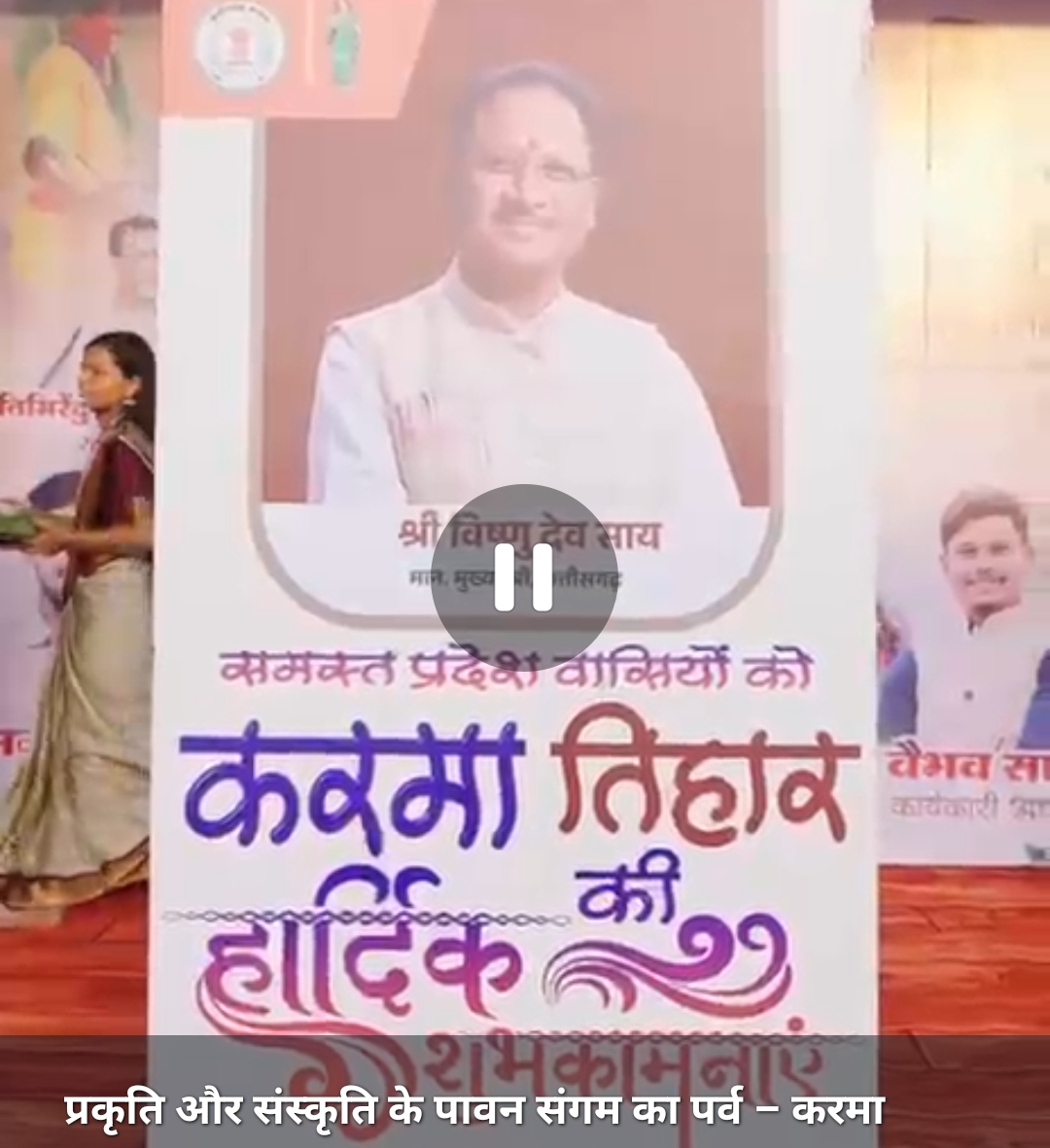रायपुर :- मुख्यमंत्री निवास में आस्था और उल्लास के साथ करमा तिहार का भव्य आयोजन हुआ। इस अवसर मुख्यमंत्री श्री विष्णु देव साय ने आदिवासी समाज की समृद्ध सांस्कृतिक धरोहर को नमन कर प्रदेशवासियों को करमा तिहार की शुभकामनाएँ दीं।