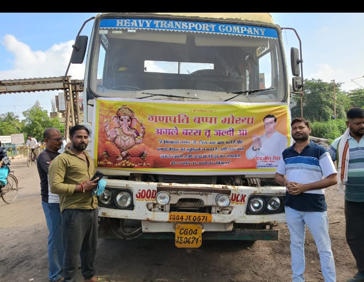 एक और सराहनीय कार्य की ओर आगे बढ़ते हुए भगवान बप्पा एवं गणेश अनंत चतुर्दशी के दिन भिलाई के विभिन्न पंडालून से गणेश विसर्जन की ओर तालाब तक जाने के लिए भिलाई ट्रक ट्रेलर ट्रांसपोर्ट के संगठन के अध्यक्ष श्री इंद्रजीत सिंह जी के नेतृत्व में भिलाई नगर वासियों के गणेश पंडाल की मूर्तियां के लिए विसर्जन में भेजी जा रही है 50 से जायदा गाड़ियां एक के बाद एक सराहनीय कार्य की ओर आगे बढ़ते हुए भिलाई ट्रक ट्रेलर एसोसिएशन यह केवल भिलाई दुर्ग ही नहीं आज छत्तीसगढ़ में भिलाई ट्रक टेलर एसोसिएशन का नाम सभी लेते हैं और कहते हैं कि संगठन हो तो भिलाई ट्रक ट्रेलर एसोसिएशन जैसे अपने कार्य के साथ-साथ समाज के प्रति भी अपने जिम्मेदारी को पुरजोर निभाते हुए आगे बढ़ रहा है