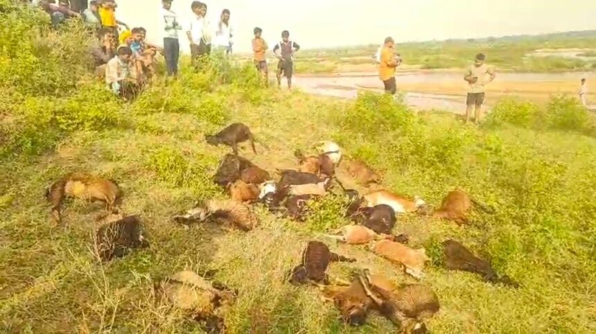रायपुर / अभनपुर। छत्तीसगढ़ के गोबरा नवापारा तहसील क्षेत्र के पारागांव में आज दोपहर एक बड़ा हादसा हो गया। महानदी तट के पास आकाशीय बिजली गिरने से 27 बकरी-बकरों की मौके पर ही मौत हो गई, जबकि 7 मवेशी गंभीर रूप से घायल हो गए हैं।