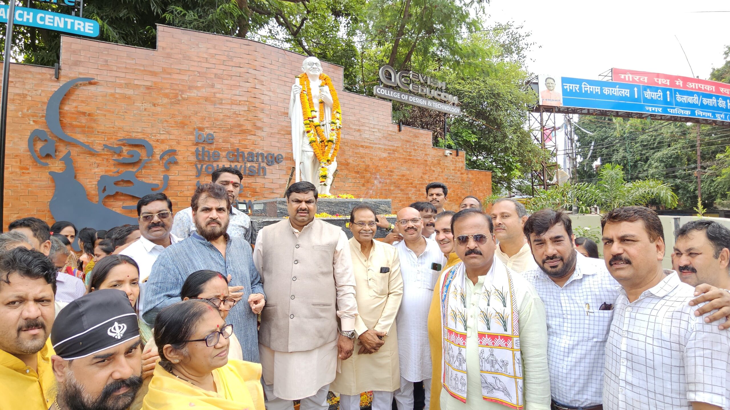 दुर्ग, गांधी जयंती के अवसर पर केबिनेट मंत्री श्री गजेन्द्र यादव ने दुर्ग गांधी चौक स्थित राष्ट्रपिता महात्मा गांधी जी की प्रतिमा पर माल्यार्पण कर उन्हें श्रद्धांजलि अर्पित की। केबिनेट मंत्री श्री यादव ने कहा कि महात्मा गांधी जी सत्य, अहिंसा और सादगी के अद्वितीय प्रतीक थे। उनके विचार और सिद्धांत आज भी समाज को नई दिशा देने का कार्य कर रहे हैं। उन्होंने कहा कि प्रदेश की सरकार गांधी जी के स्वदेशी भारत के संकल्प को पूरा करने के लिए सतत कार्य कर रही है। उन्होंने आगे कहा कि वोकल फॉर लोकल की परिकल्पना गांधी जी के स्वदेशी विचारों का ही आधुनिक स्वरूप है, जिसे प्रोत्साहित करने के लिए केंद्र व राज्य सरकार विभिन्न योजनाओं के माध्यम से स्थानीय उत्पादों और उद्यमों को बढ़ावा दे रही है। इस अवसर पर खादी ग्रामोद्योग के अध्यक्ष श्री राकेश पाण्डेय, श्री सुरेंद्र कौशिक, श्रीमति उषा टावरी, श्री श्याम शर्मा, पार्षदगण और बड़ी संख्या में लोग उपस्थित रहे।