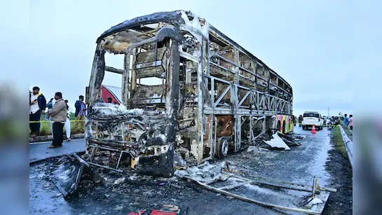 बेंगलुरु-हैदराबाद नेशनल हाईवे (NH-44) पर गुरुवार देर रात एक भीषण सड़क हादसे में कावेरी ट्रैवल्स की बस आग का गोला बन गई। हादसे में 11 यात्रियों की मौत हो गई, जबकि कई अन्य झुलसकर घायल हो गए। ये बस हैदराबाद से बेंगलुरु जा रही थी और इसमें कुल 38 यात्री सवार थे। हादसा कुरनूल जिले के पास हुआ, जब बस की एक दोपहिया वाहन से टक्कर हो गई। टक्कर के बाद बाइक बस के नीचे फंस गई और कुछ ही सेकंड में बस में भयानक आग लग गई।