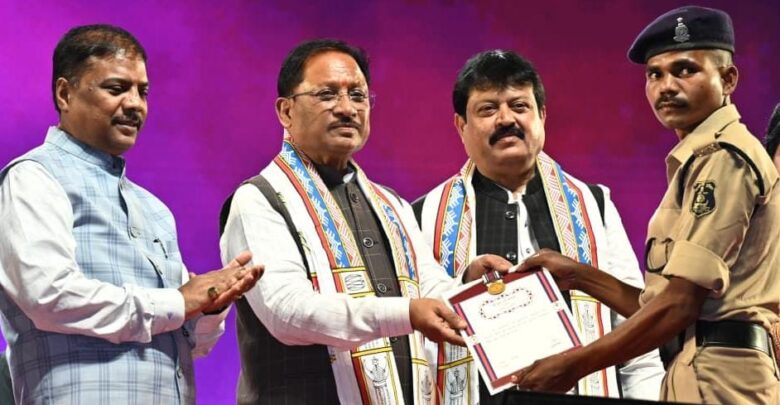 मुख्यमंत्री विष्णु देव साय ने नक्सल ऑपरेशन में अदम्य साहस और वीरता का प्रदर्शन करने वाले पुलिस के 14 जवानों को वीरता पदक प्रदान कर सम्मानित किया। उन्होंने शहीद अतिरिक्त पुलिस अधीक्षक आकाश राव गिरिपुंजे और शहीद वीरेंद्र कुमार शोरी के परिजनों सहित नक्सल मोर्चे पर जांबाजी के साथ लड़ने वाले पुलिस जवानों धरम सिंह तुलावी, विजय पुनेंग,गोपाल बरदू, रामेश्वर ओयामी, राजूलाल मरकाम, समलूराम सेठिया, तुलाराम ओवासी, मोहन लाल कट्टम, संतोष मोरामी, मनोज यादव, जामुराव तथा निशा कचलाम को वीरता पदक प्रदान कर सम्मानित किया।