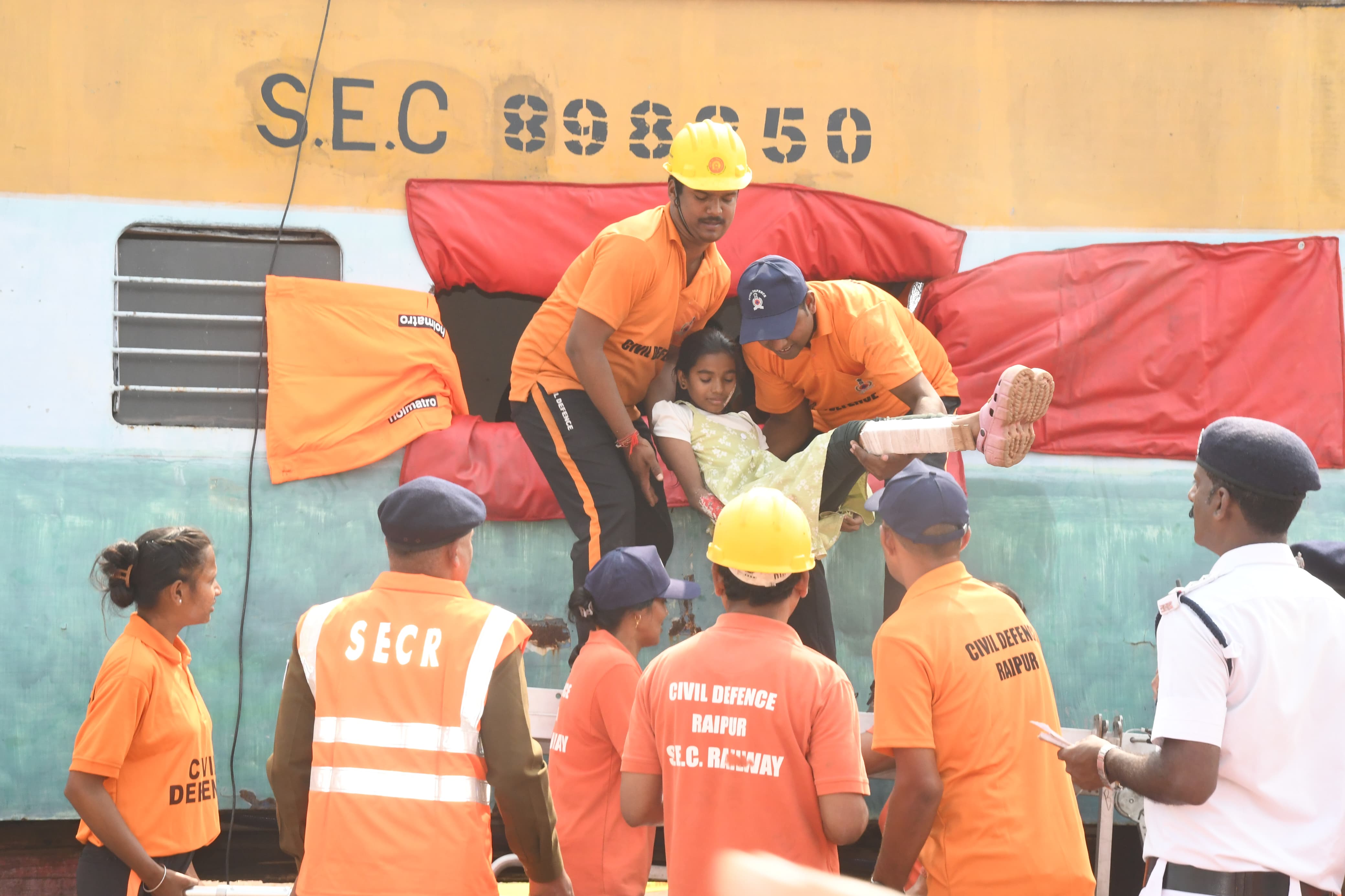 इसी कड़ी मे 21 नवम्बर 2025 को यह अभ्यास प्रदर्शन राष्ट्रीय आपदा मोचन बल NDRF की बटालियन मुंडाली (कटक) ओडीसा, रायपुर मंडल संरक्षा विभाग, रेल आपदा प्रबंधन टीम ( ART/ARMV) की आपदा राहत टीम तथा सिविल डिफेंस द्वारा संयुक्त रूप से बी डी वाय डी/ बी एम वाय में किया गया । उक्त संयुक्त मॉक ड्रिल में एन.डी.आर.एफ., सिविल डिफेंस, स्काउट एवं गाइड से ART/ARME टीम से एवं रेलवे मेडिकल टीम, वाणिज्य, मेकेनिकल, दूरसंचार इलेक्ट्रिकल एवं अन्य विभाग मौजूद रहे। उक्त आयोजन में छत्तीसगढ़ शासन एवं बीएसपी के अग्निशामक वाहन, एंबुलेंस एवं लोकल पुलिस, रेलवे सुरक्षा बल की उचित व्यवस्था थी ।